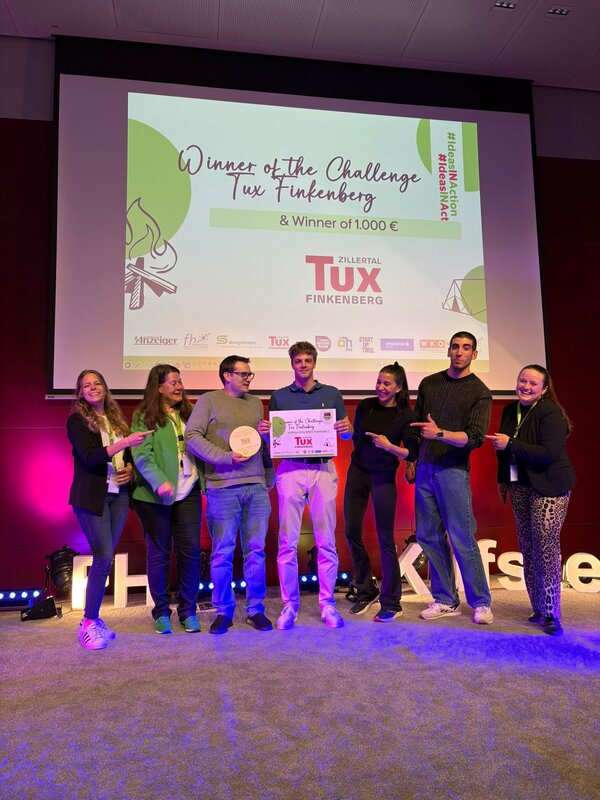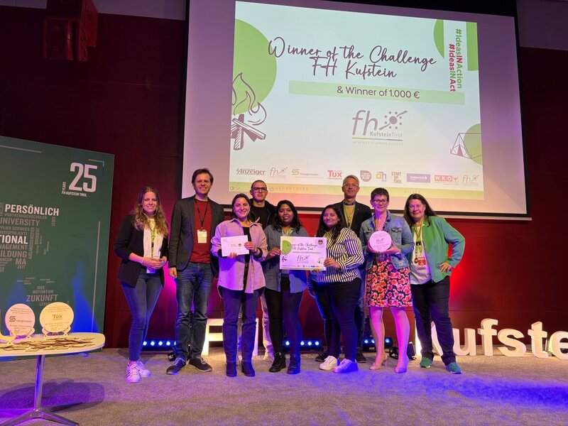 In May 2025, the eighth INNoCamp took place at University of Applied Sciences Kufstein Tirol. Around 70 students – including 34 international participants from Finland, Lithuania, Spain, and Canada – worked in interdisciplinary teams on four real-world challenges from business and society. The challenges were contributed to and accompanied by partner companies. The goal was to develop creative and feasible solutions, which were presented on the final day as an elevator pitch. The best teams were awarded Euro 1,000 each for their ideas.