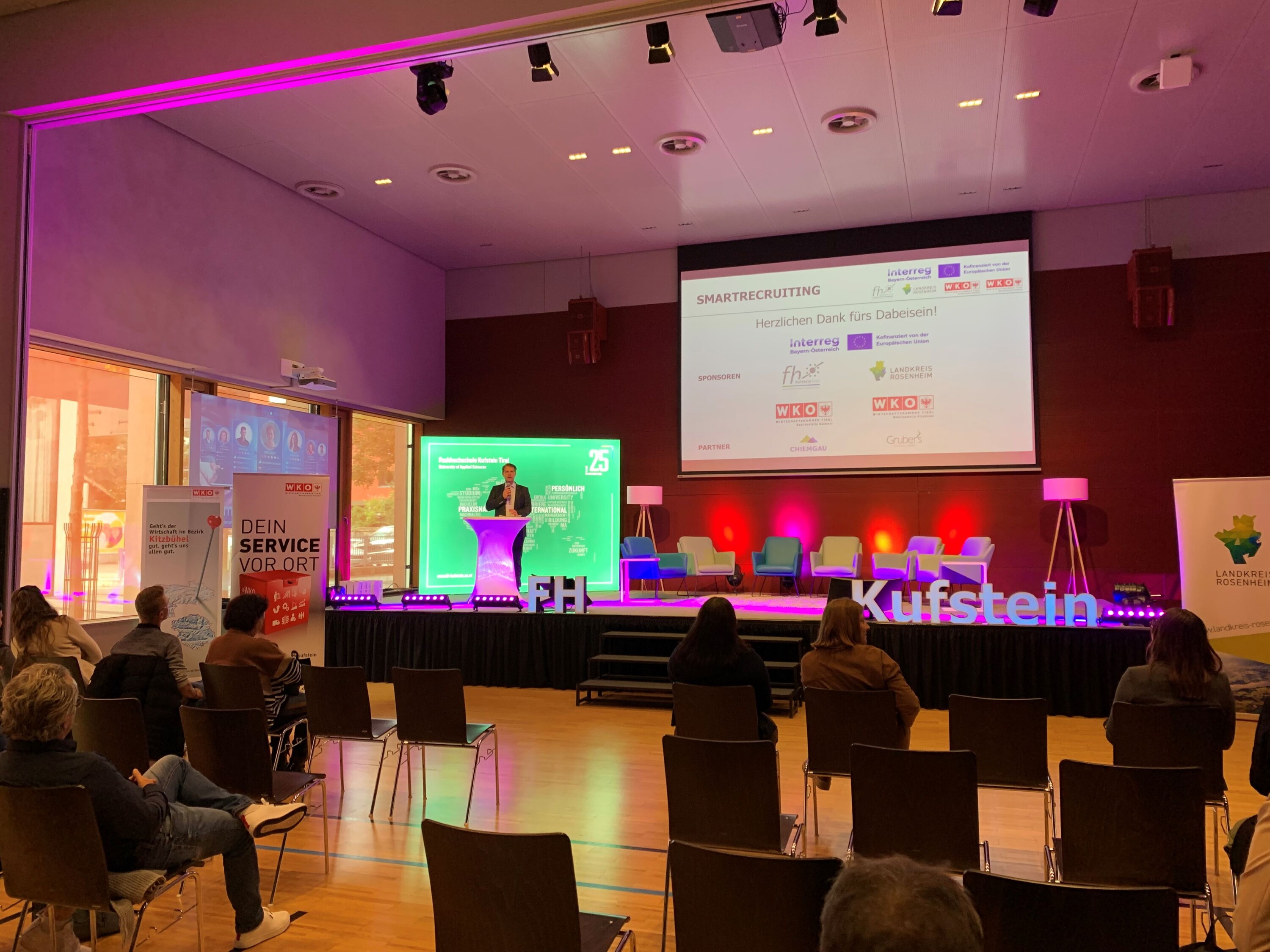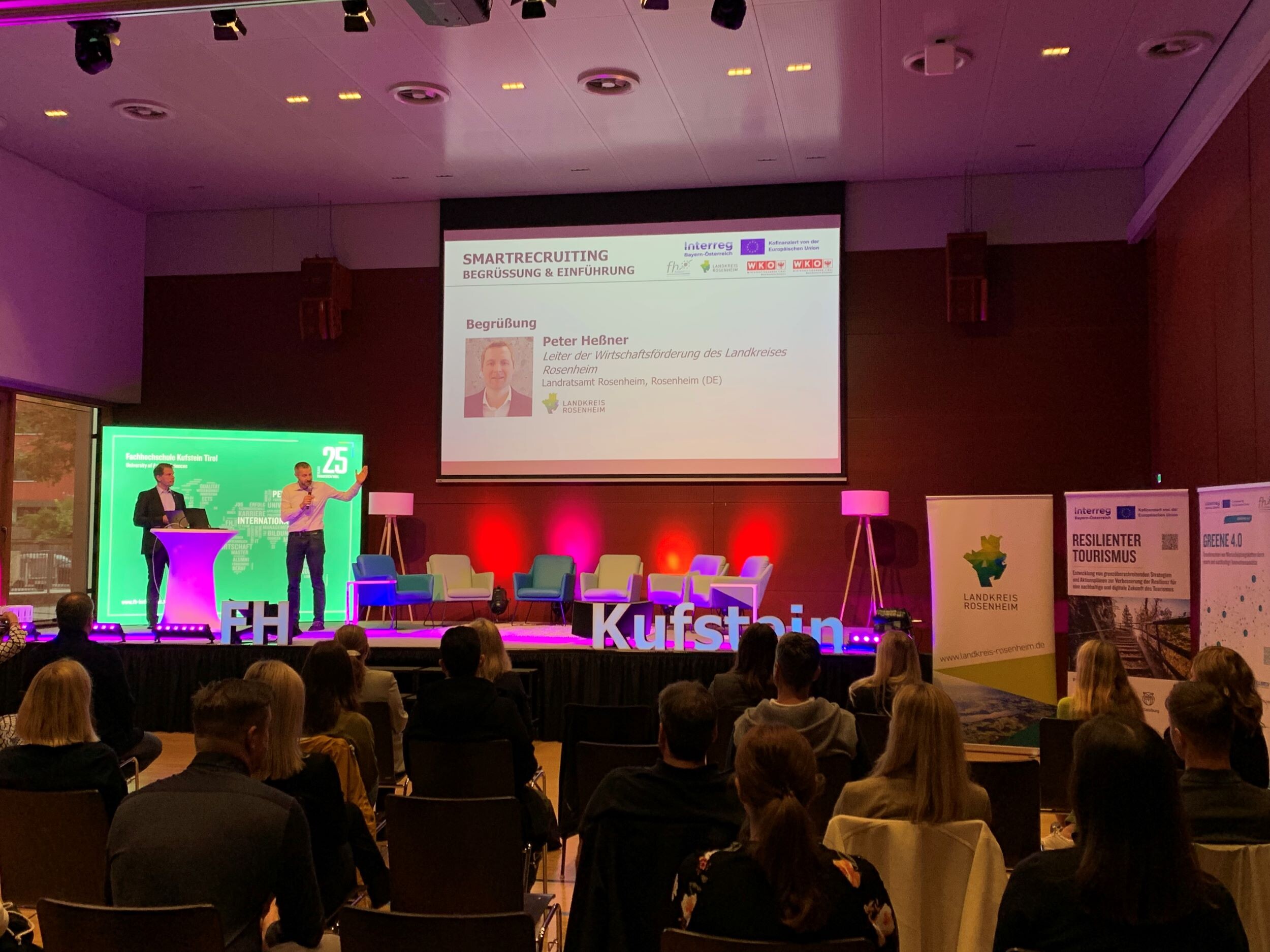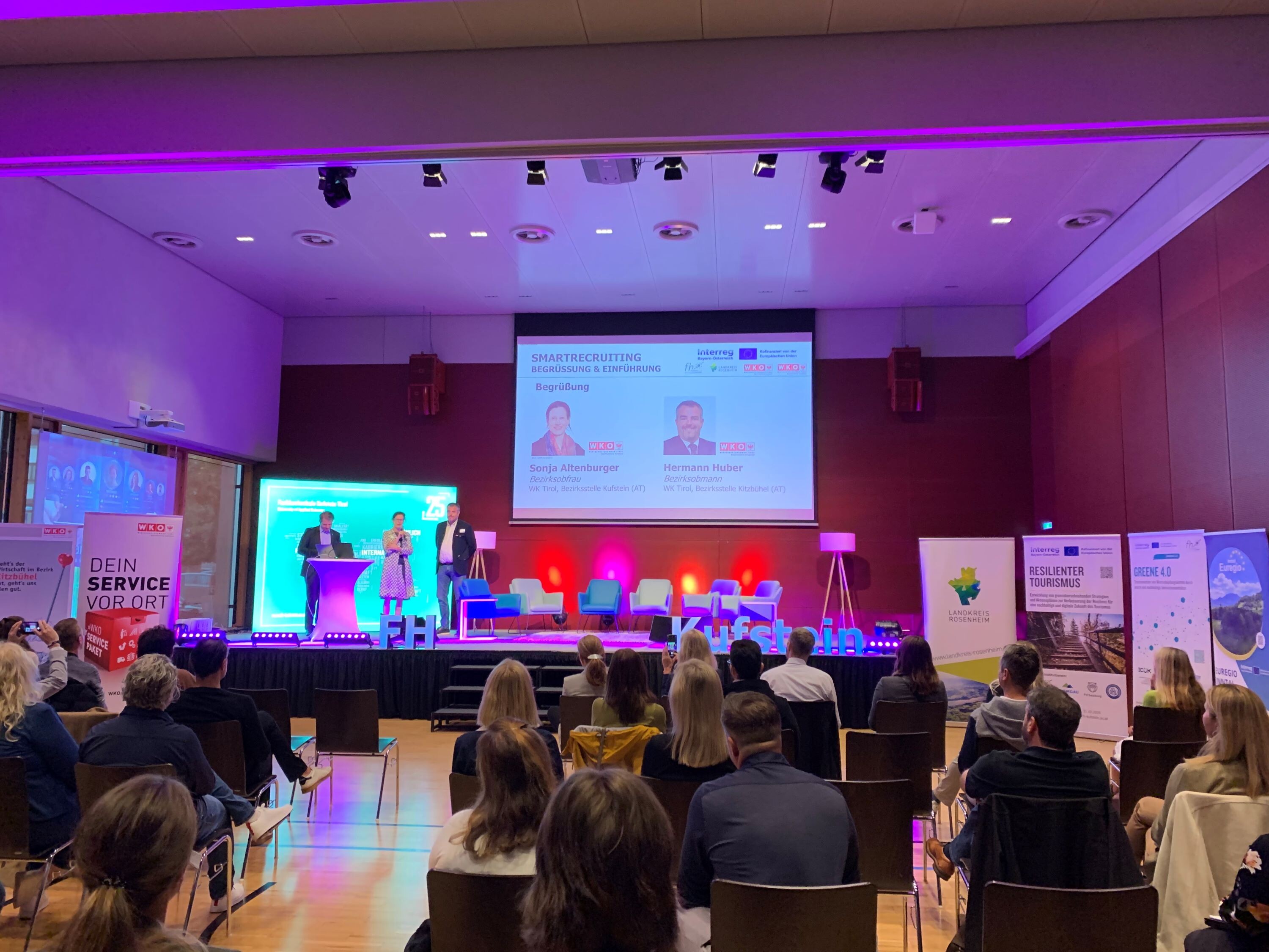 The event was funded as part of the INTERREG Bavaria-Austria program and implemented jointly in close cooperation with all project partners (FH Kufstein Tirol, Rosenheim district, and the Tyrol Chambers of Commerce – Kufstein and Kitzbühel district offices).