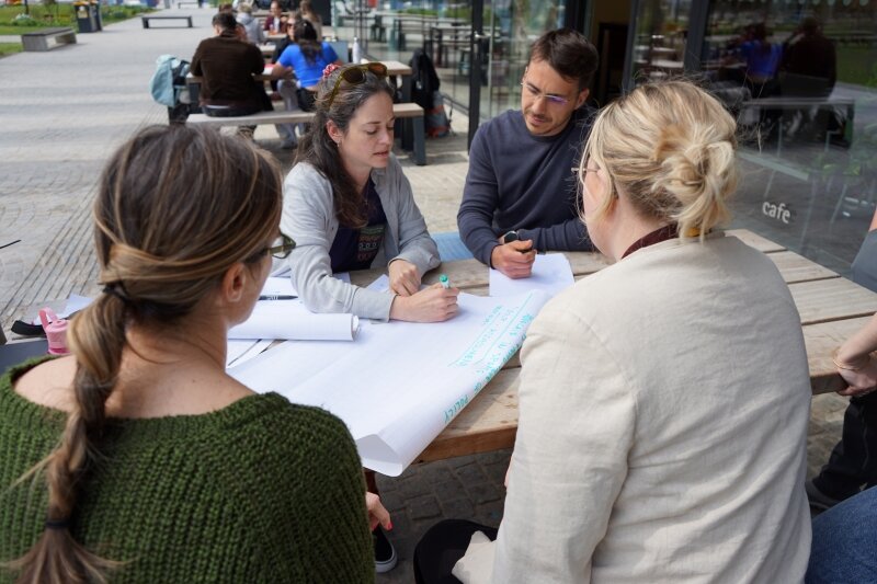 Teilnehmende während des Ideenfindungsprozesses zur Entwicklung eines neuen Toolkits für digitales lernen, beim Treffen des PASS-Konsortiums an der FH Kufstein Tirol.